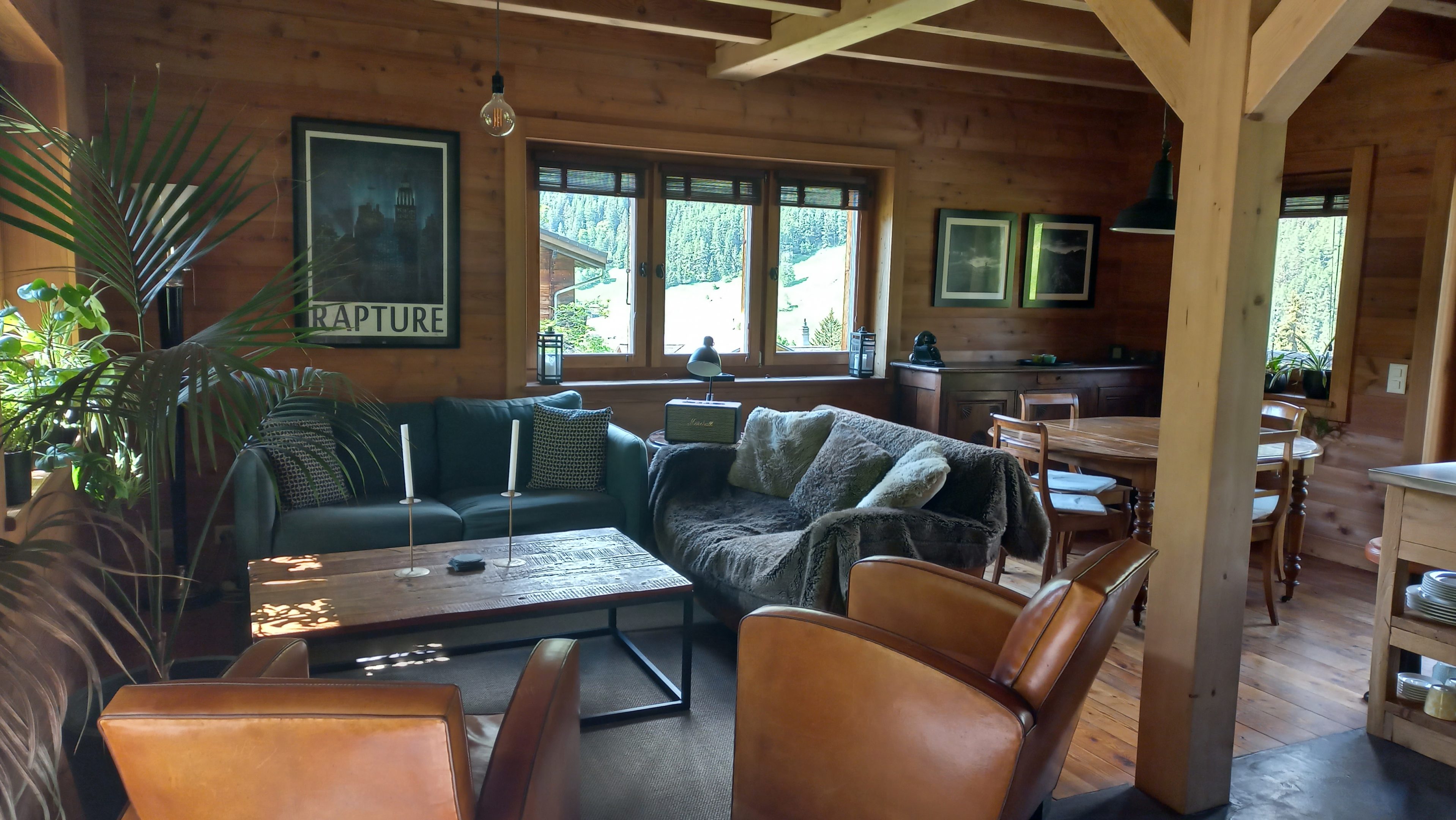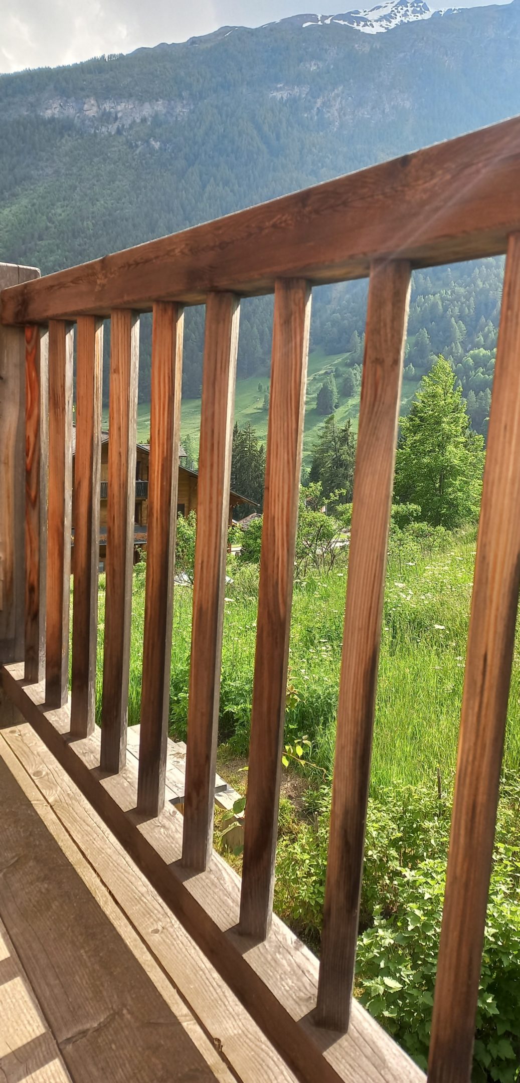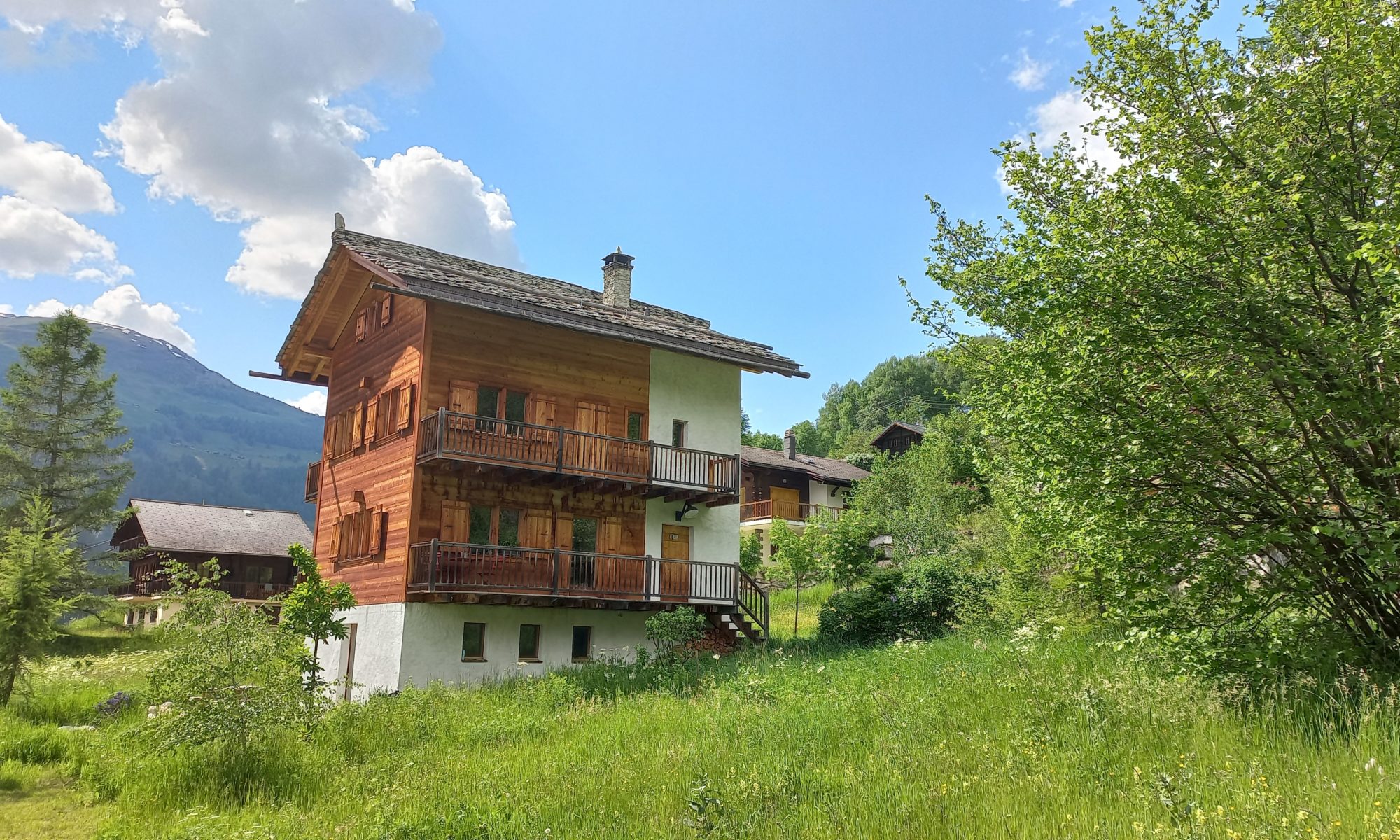 Le concept de la partie dure en moellons a été remplacé par du béton avec du crépis. Les façades en madrier, pour des raisons constructives (le bois actuel n’est pas sec), sont remplacées par un bardage en mélèze. Par conséquent Il n’y a pas de “tsavaches”.