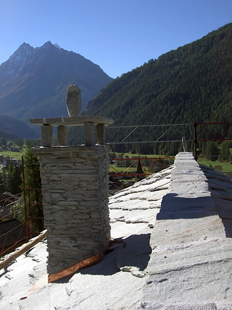Dans ce projet, l’enveloppe budgétaire était limitée. Il a donc fallu choisir les matériaux et les éléments de construction qui pouvaient être remplacés ou supprimés sans perdre la typologie du Lieu. Le toit en lauze, les chéneaux en mélèze et les montants des balustrades en diagonales sont identiques aux archétypes du Lieu.